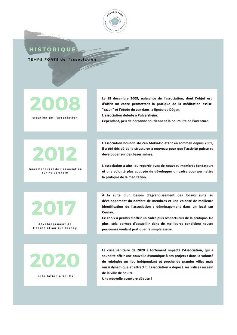 Historiquement, plusieurs moments ont été des temps forts pour l'association (voir image ci-dessous).